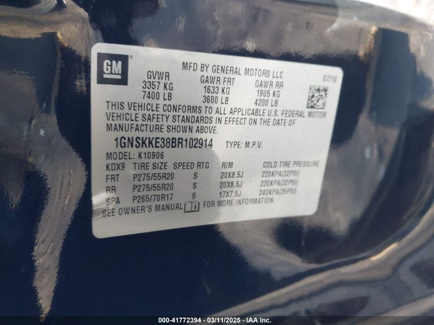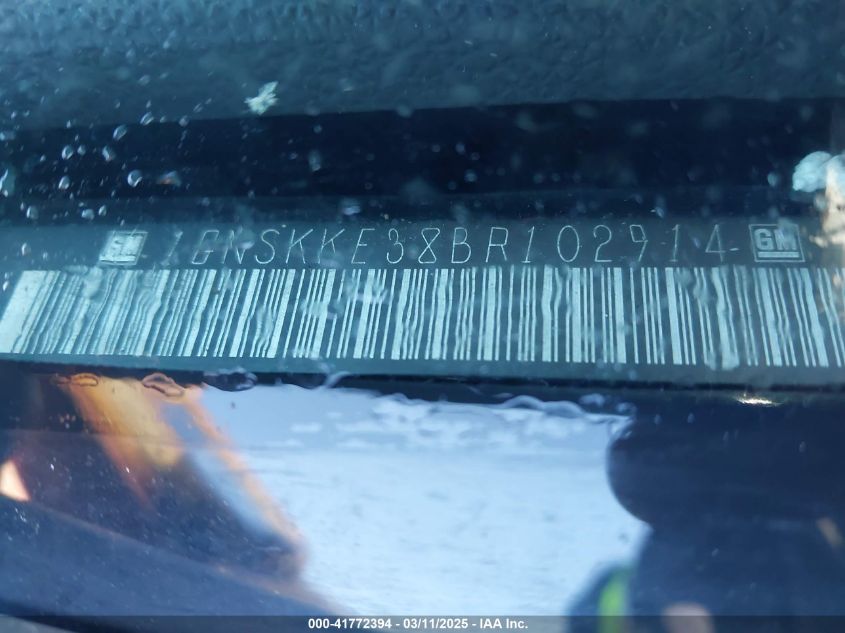 Color BlackCylinders 8Drive Full driveVIN 1GNSKKE38BR******State Run & Drive VerifiedDamage Front or backAuction date 2025-03-25