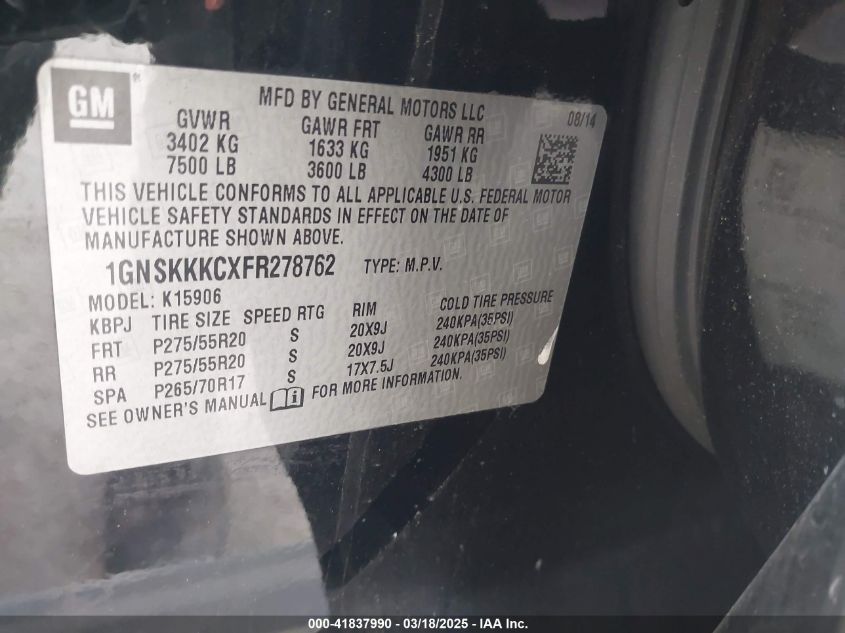 2015 CHEVROLET SUBURBAN 2015 Gasoline, 5.3, Full drive, VIN - 1GNSKKKCXFR****** from the USA