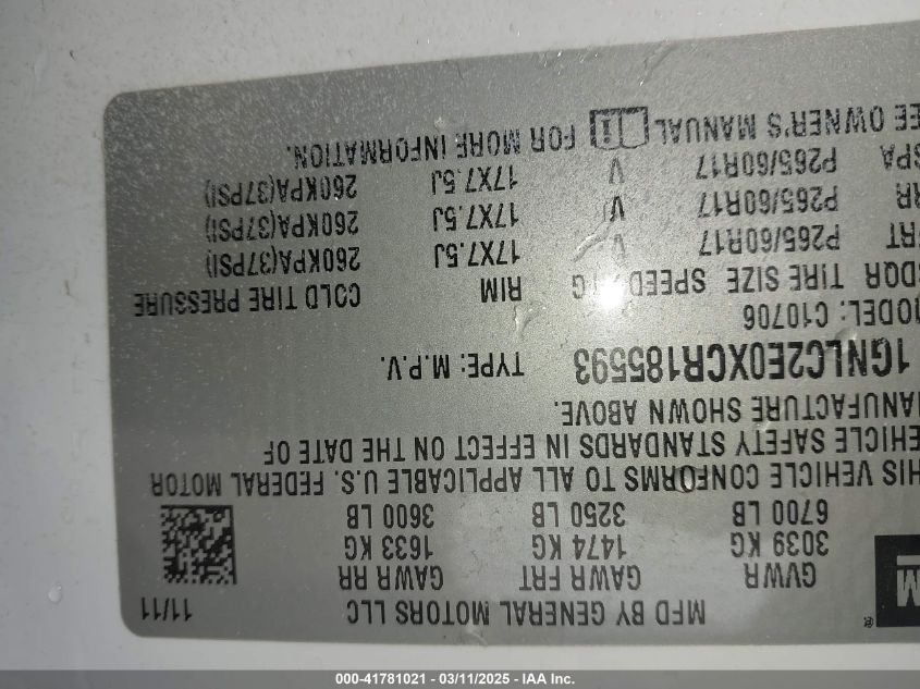 Color WhiteCylinders 8Drive UnknownVIN 1GNLC2E0XCR******State Run & Drive VerifiedDamage From the sidesAuction date 2025-03-20