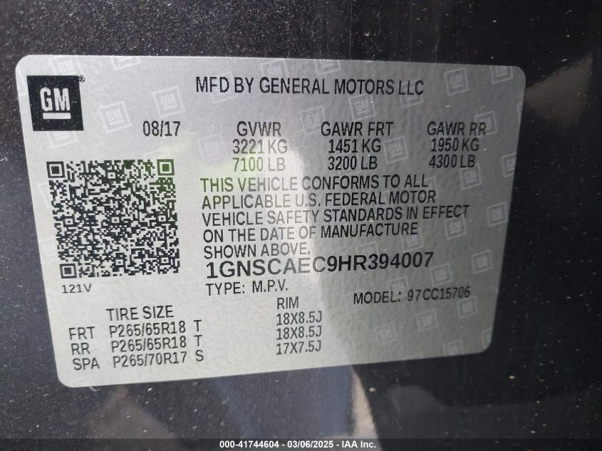 2017 CHEVROLET TAHOE 2017 Gasoline, 5.3, Unknown, VIN - 1GNSCAEC9HR****** from the USA