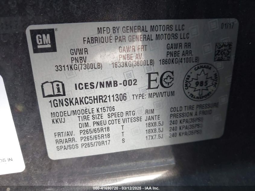 2017 CHEVROLET TAHOE 2017 Gasoline, 5.3, Full drive, VIN - 1GNSKAKC5HR****** from the USA