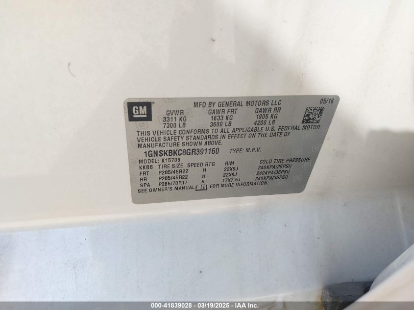 Color WhiteCylinders 8Drive Full driveVIN 1GNSKBKC8GR******State Run & Drive VerifiedDamage Front or back AutoRIA