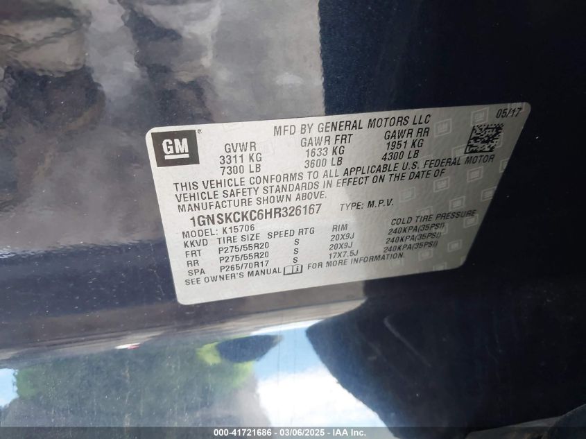 2017 CHEVROLET TAHOE 2017 Gasoline, 5.3, Full drive, VIN - 1GNSKCKC6HR****** from the USA
