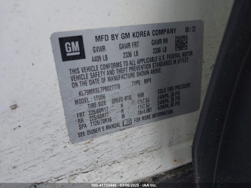 2023 CHEVROLET TRAILBLAZER 2023 Gasoline, 1.3, Full drive, VIN - KL79MRSL7PB****** from the USA