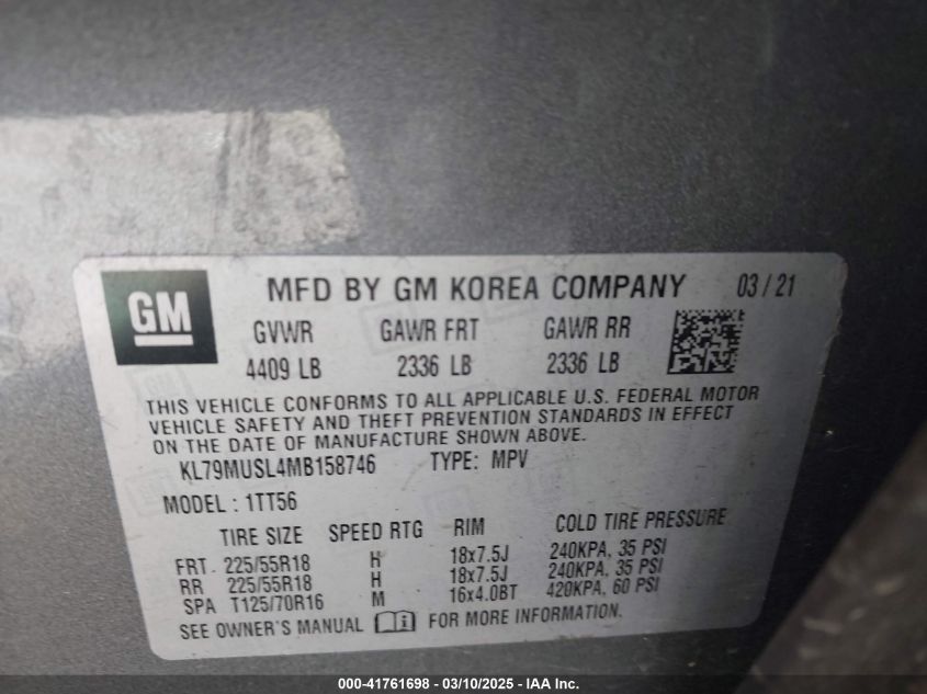 2021 CHEVROLET TRAILBLAZER 2021 Gasoline, 1.3, Full drive, VIN - KL79MUSL4MB****** from the USA