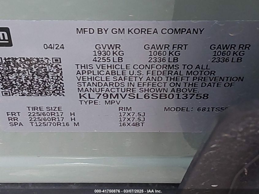 2025 CHEVROLET TRAILBLAZER 2025 Gasoline, 1.3, Front wheel drive, VIN - KL79MVSL6SB****** from the USA