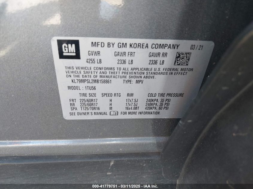 2021 CHEVROLET TRAILBLAZER 2021 Gasoline, 1.3, Front wheel drive, VIN - KL79MPSL2MB****** from the USA