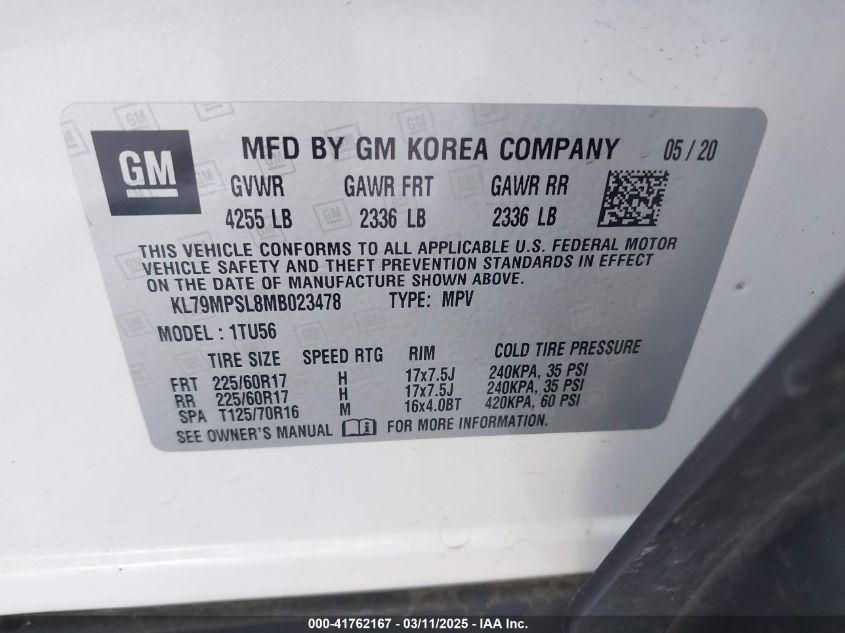 2021 CHEVROLET TRAILBLAZER 2021 Gasoline, 1.3, Front wheel drive, VIN - KL79MPSL8MB****** from the USA