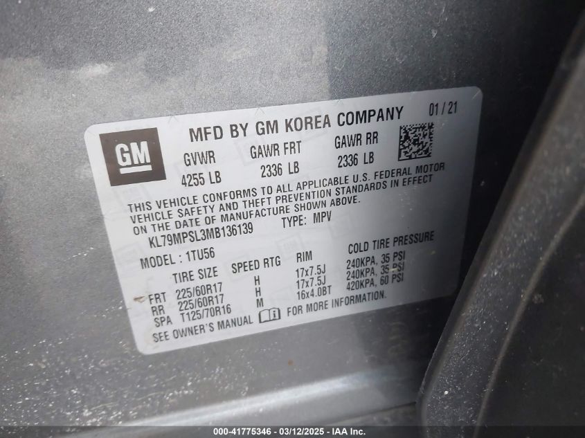 2021 CHEVROLET TRAILBLAZER 2021 Gasoline, 1.3, Front wheel drive, VIN - KL79MPSL3MB****** from the USA