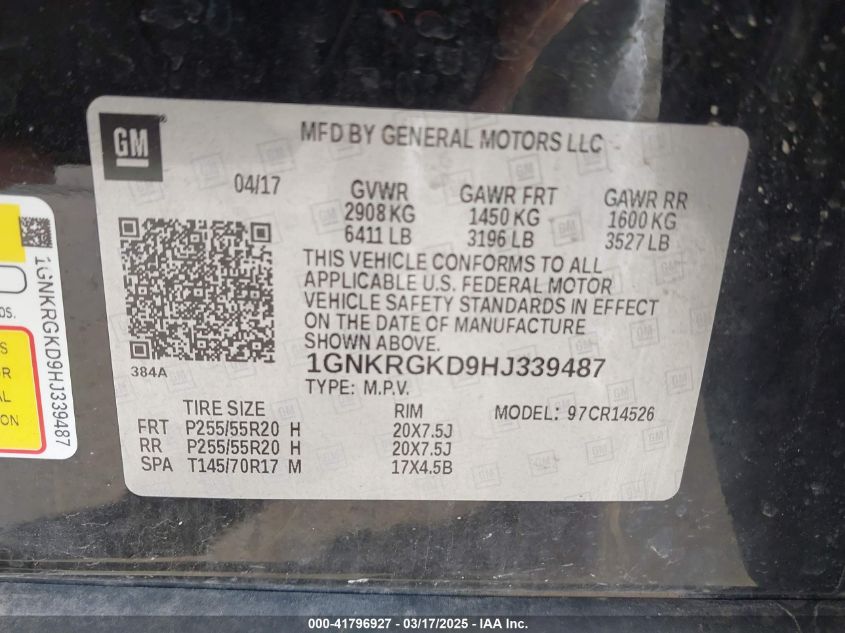 Color BlackCylinders 6Drive Front wheel driveVIN 1GNKRGKD9HJ******State Run & Drive VerifiedDamage Back AutoRIA