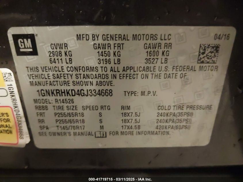 Color GrayCylinders 6Drive Front wheel driveVIN 1GNKRHKD4GJ******State Run & Drive VerifiedDamage Right side AutoRIA