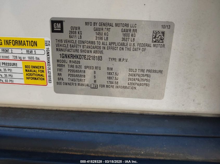 Color WhiteCylinders 6Drive Front wheel driveVIN 1GNKRHKD7EJ******State Run & Drive VerifiedDamage Back AutoRIA