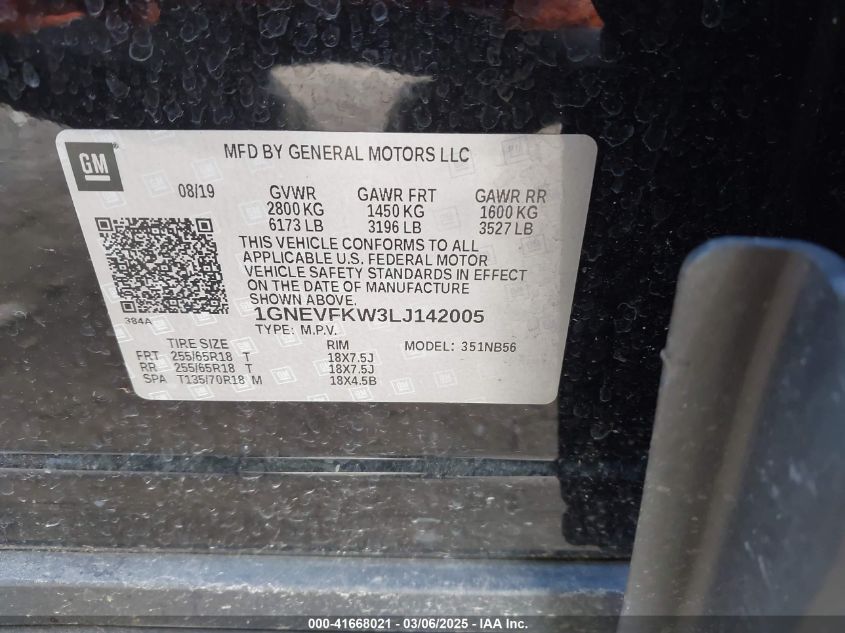 Color BlackCylinders 6Drive Full driveVIN 1GNEVFKW3LJ******State Run & Drive VerifiedDamage Front or back AutoRIA