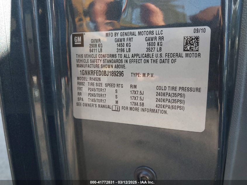 2011 CHEVROLET TRAVERSE 2011 Gasoline, 3.6, Front wheel drive, VIN - 1GNKRFED0BJ****** from the USA