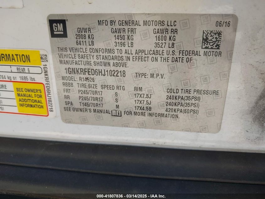 Color WhiteCylinders 6Drive Front wheel driveVIN 1GNKRFED6HJ******State Run & Drive VerifiedDamage Left side AutoRIA
