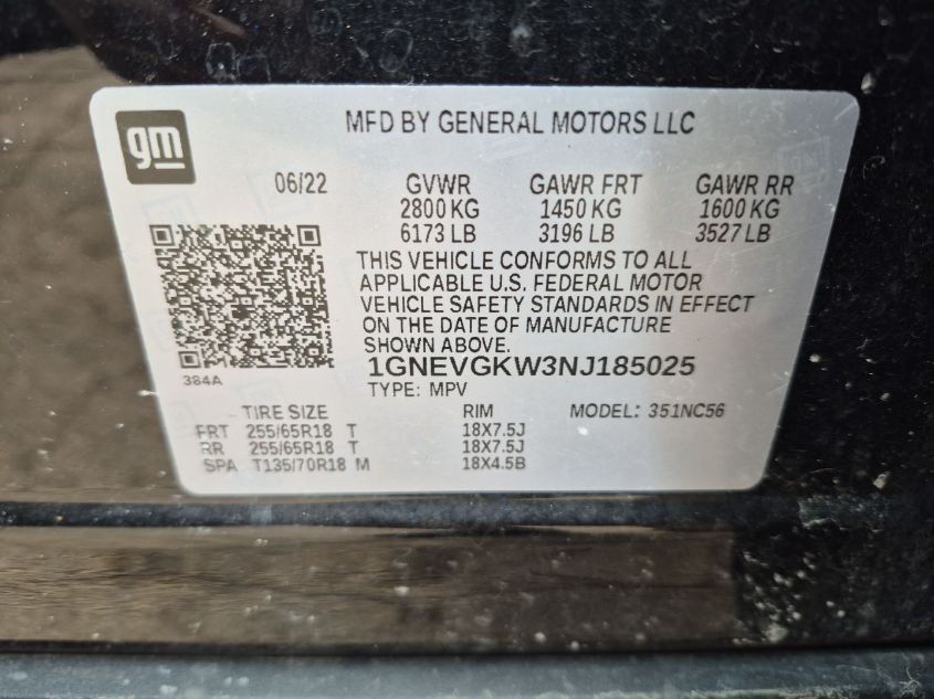 Color Cylinders 6Drive Full driveVIN 1GNEVGKW3NJ******State Run & Drive VerifiedDamage InsignificantAuction date 2025-06-01 AutoRIA