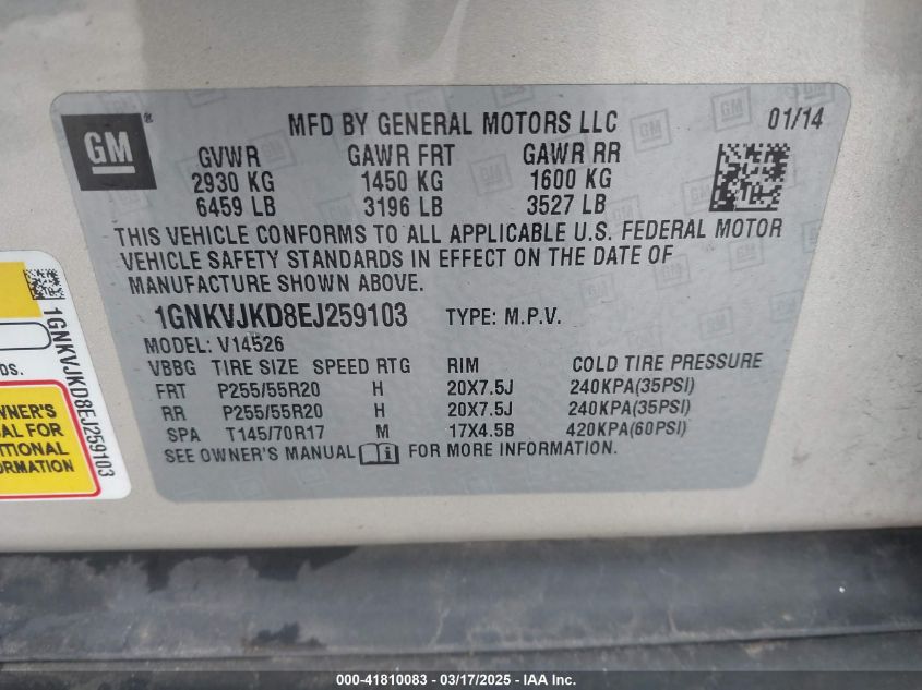 Color BeigeCylinders 6Drive Full driveVIN 1GNKVJKD8EJ******State Run & Drive VerifiedDamage Front or back AutoRIA