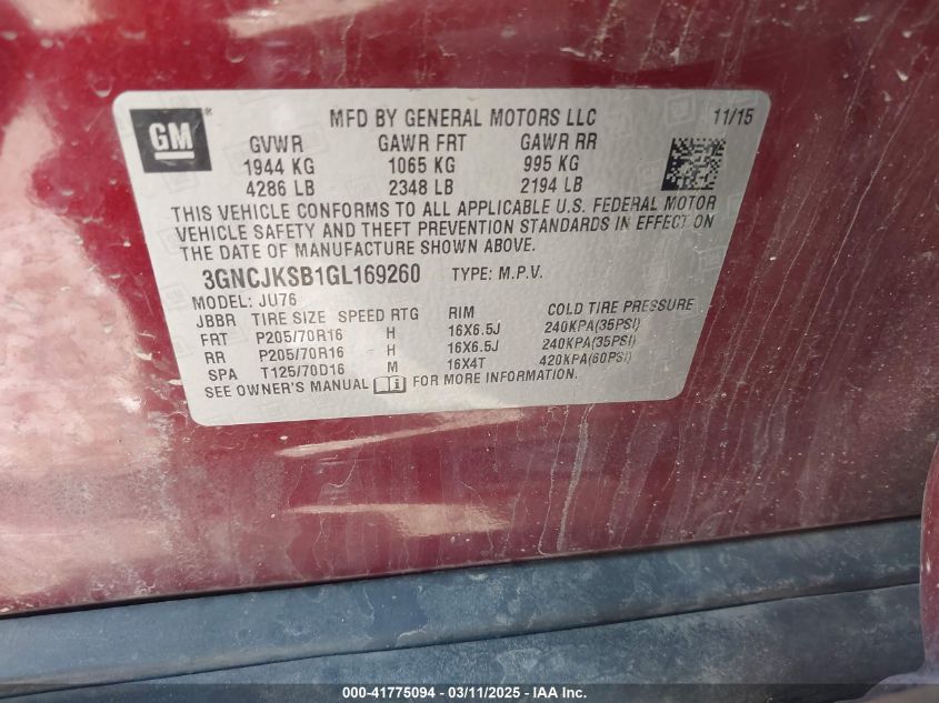Color BurgundyCylinders 4Drive Front wheel driveVIN 3GNCJKSB1GL******State Run & Drive VerifiedDamage Front or backAuction date 2025-03-20 AutoRIA