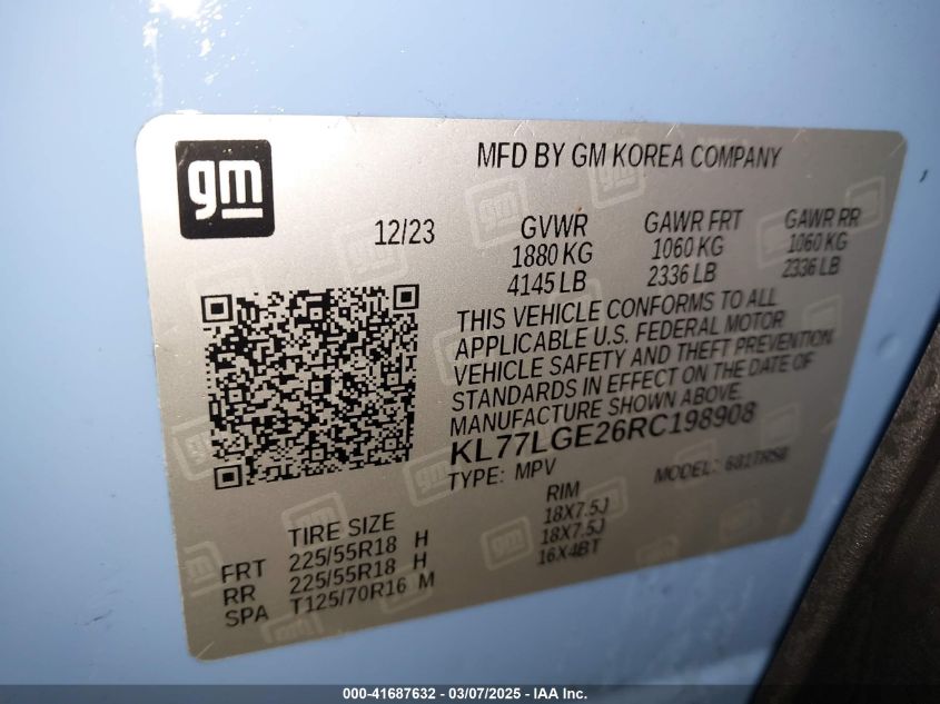 2024 CHEVROLET TRAX 2024 Gasoline, 1.2, Front wheel drive, VIN - KL77LGE26RC****** from the USA