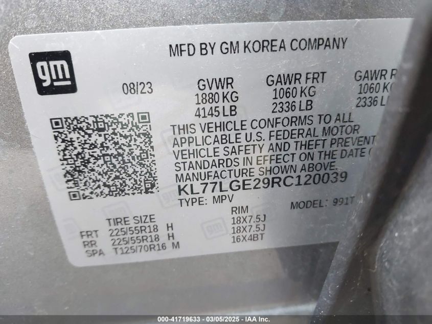 Color GrayCylinders 3Drive Front wheel driveVIN KL77LGE29RC******State Run & Drive VerifiedDamage All over the car