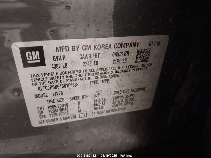 2018 CHEVROLET TRAX 2018 Gasoline, 1.4, Full drive, VIN - KL7CJPSB5JB****** from the USA