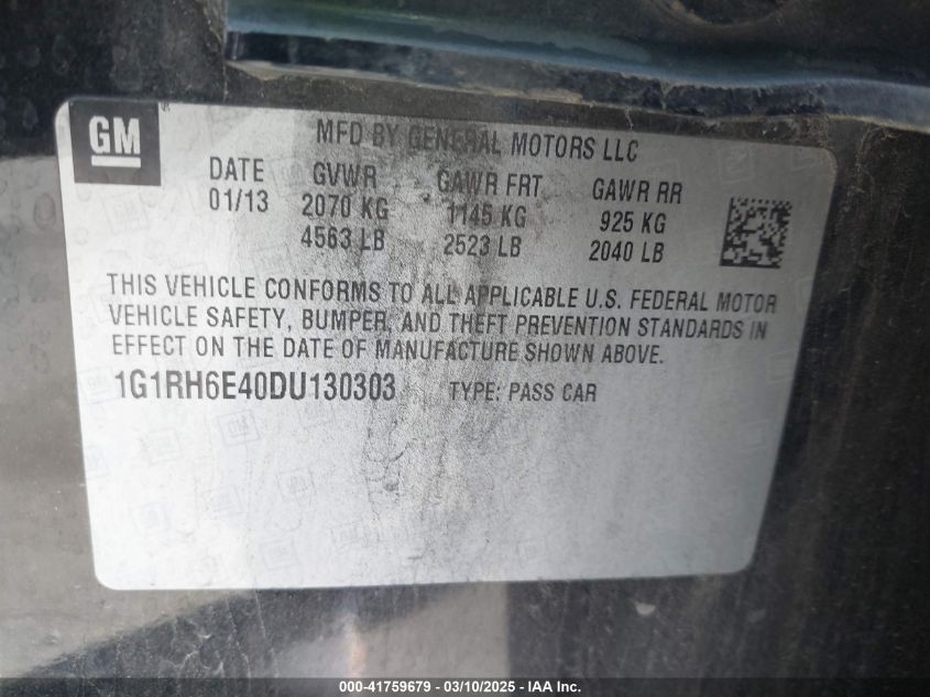 Color BlackCylinders 4Drive Front wheel driveVIN 1G1RH6E40DU******State Run & Drive VerifiedDamage BackAuction date 2025-03-21 AutoRIA