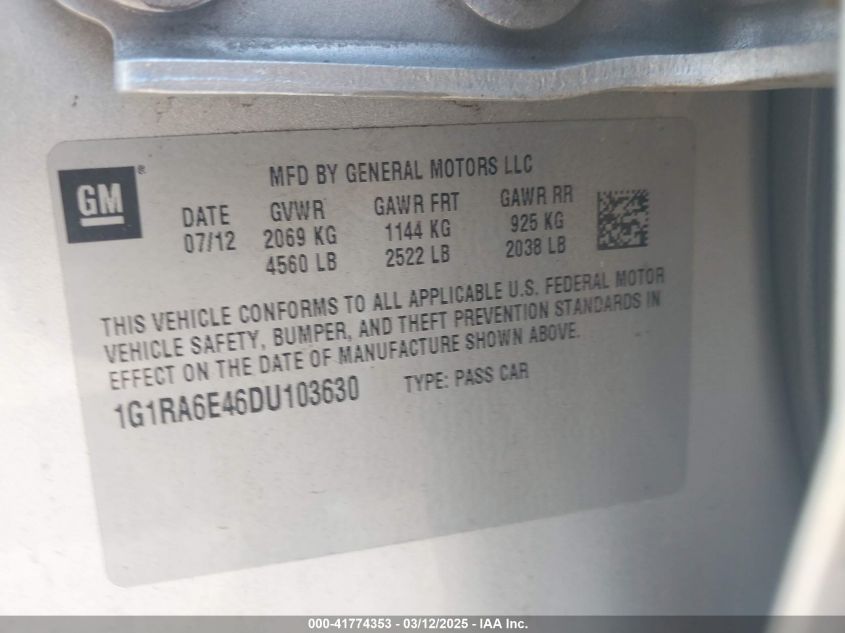 Color SilverCylinders 4Drive Front wheel driveVIN 1G1RA6E46DU******State Run & Drive VerifiedDamage Front or back AutoRIA