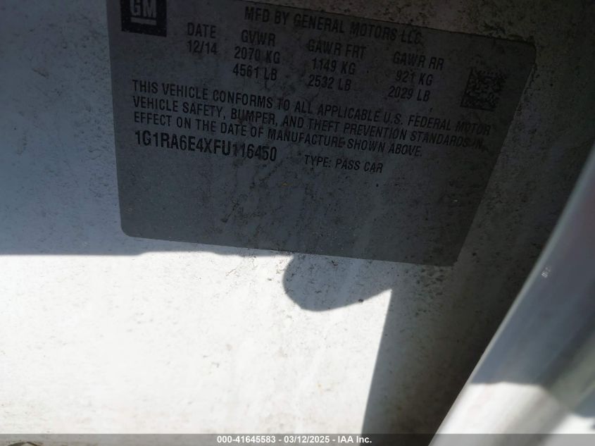 Color WhiteCylinders 4Drive Front wheel driveVIN 1G1RA6E4XFU******State Run & Drive VerifiedDamage Front or back AutoRIA