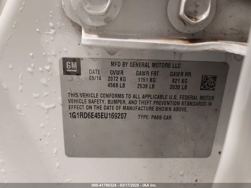 2014 CHEVROLET VOLT 2014 Hybrid, 1.4, Front wheel drive, VIN - 1G1RD6E45EU****** from the USA