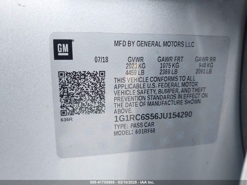 2018 CHEVROLET VOLT 2018 Hybrid, 1.5, Front wheel drive, VIN - 1G1RC6S56JU****** from the USA