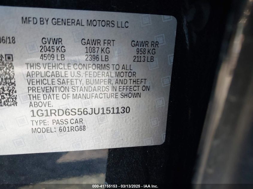 2018 CHEVROLET VOLT 2018 Hybrid, 1.5, Front wheel drive, VIN - 1G1RD6S56JU****** from the USA