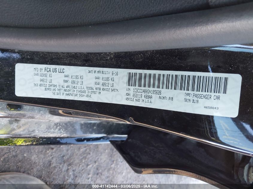 Color BlackCylinders 4Drive Front wheel driveVIN 1C3CCCAB0GN******State Run & Drive VerifiedDamage Front or back AutoRIA