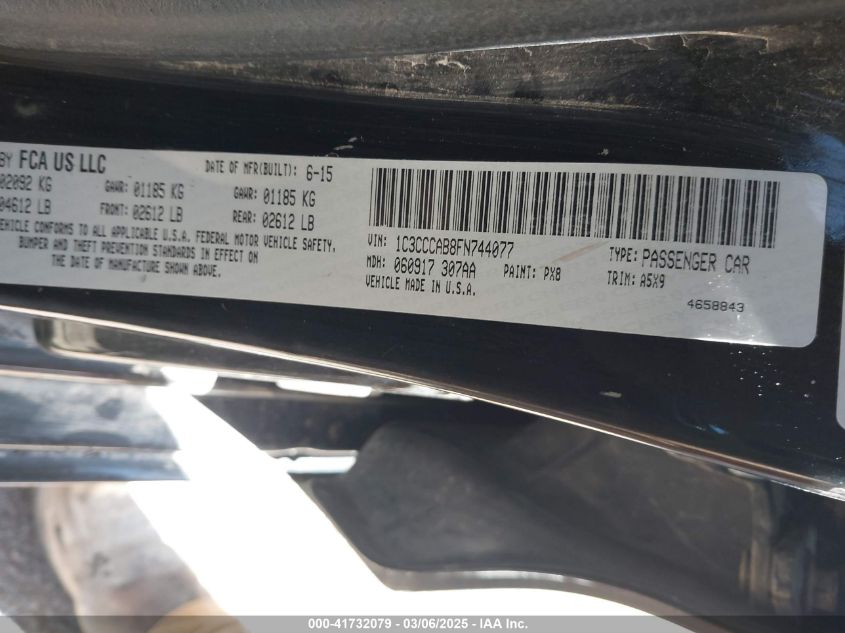Color BlackCylinders 4Drive Front wheel driveVIN 1C3CCCAB8FN******State Run & Drive VerifiedDamage Front or back AutoRIA