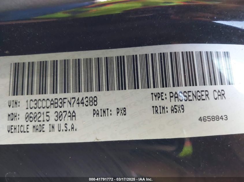 Color BlackCylinders 4Drive Front wheel driveVIN 1C3CCCAB3FN******State Run & Drive VerifiedDamage Front right AutoRIA