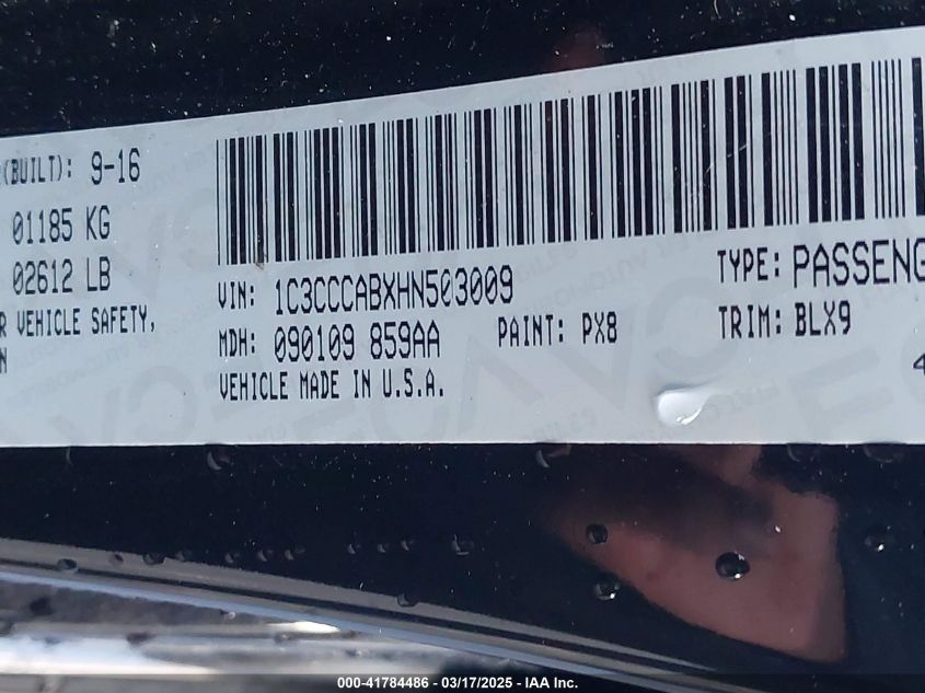 Color BlackCylinders 4Drive Front wheel driveVIN 1C3CCCABXHN******State Run & Drive VerifiedDamage Back