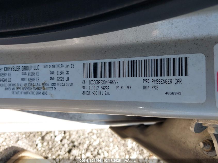 Color GoldCylinders 4Drive Front wheel driveVIN 1C3CCBABXDN******State Run & Drive VerifiedDamage Front left AutoRIA
