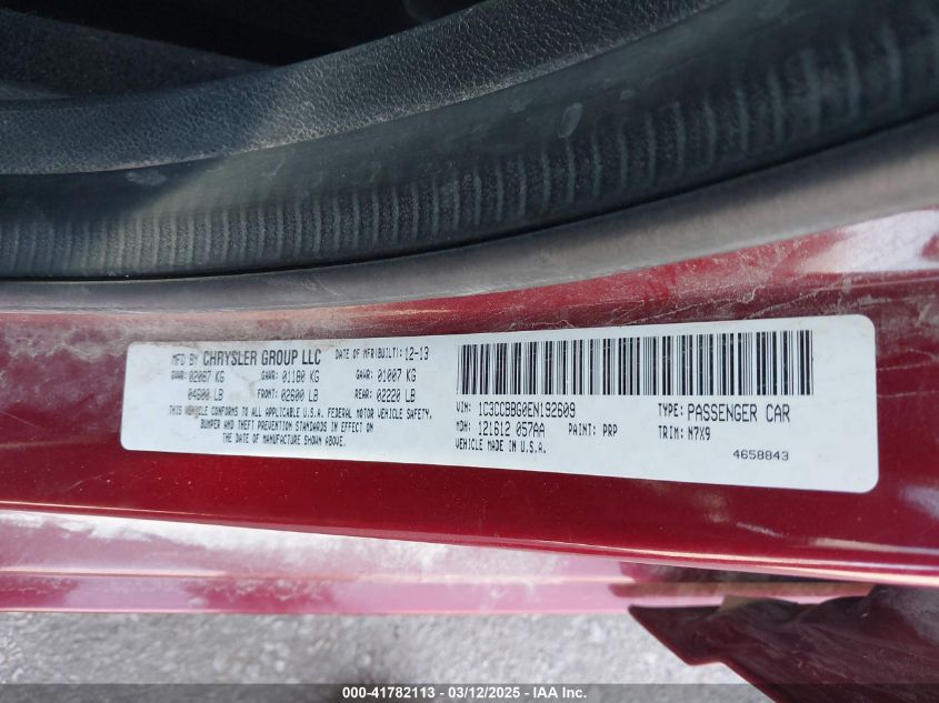 Color RedCylinders 6Drive Front wheel driveVIN 1C3CCBBG0EN******State Run & Drive VerifiedDamage It is unknown AutoRIA