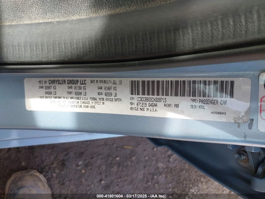 Color BlueCylinders 6Drive Front wheel driveVIN 1C3CCBBG5CN******State Run & Drive VerifiedDamage Front or back AutoRIA