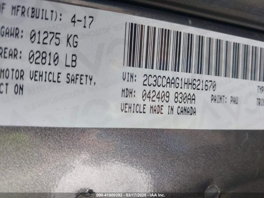 Color GrayCylinders 6Drive Rear wheel driveVIN 2C3CCAAG1HH******State Run & Drive VerifiedDamage Front and back AutoRIA
