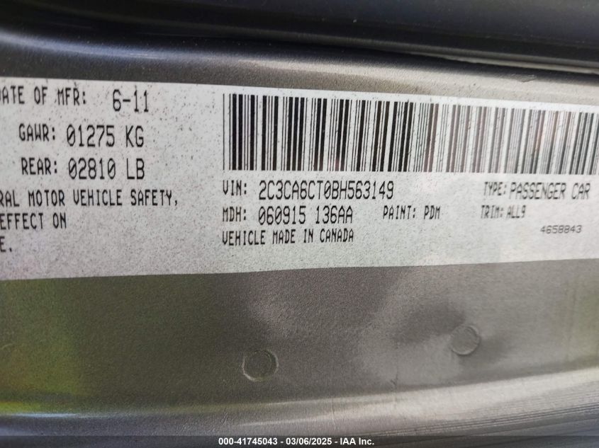 Color GrayCylinders 8Drive Rear wheel driveVIN 2C3CA6CT0BH******State Run & Drive VerifiedDamage Front rightAuction date 2025-03-25 AutoRIA