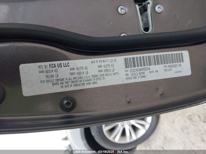 2017 CHRYSLER 300C 2017 Gasoline, 3.6, Rear wheel drive, VIN - 2C3CCAEG0HH****** from the USA