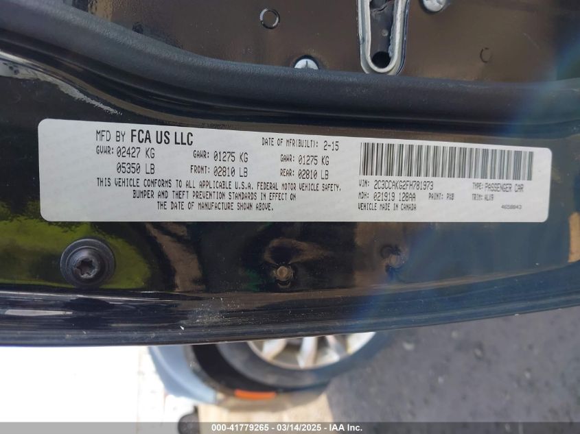 Color BlackCylinders 6Drive Full driveVIN 2C3CCAKG2FH******State Run & Drive VerifiedDamage InsignificantAuction date 2025-03-26 AutoRIA