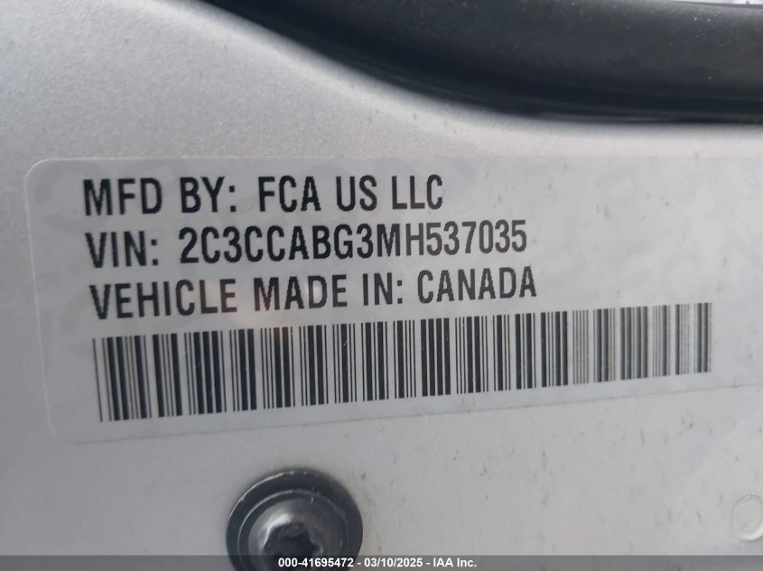Color SilverCylinders 6Drive Rear wheel driveVIN 2C3CCABG3MH******State Run & Drive VerifiedDamage Front left