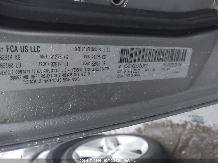 Color SilverCylinders 6Drive Rear wheel driveVIN 2C3CCABGXJH******State Run & Drive VerifiedDamage Front or back AutoRIA