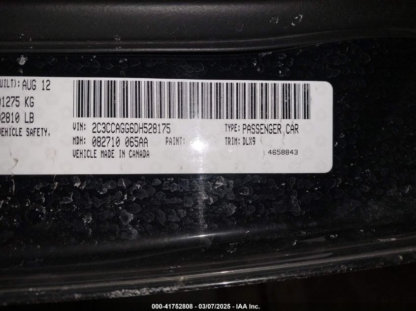 Color BlackCylinders 6Drive Full driveVIN 2C3CCAGG6DH******State Run & Drive VerifiedDamage Front or back