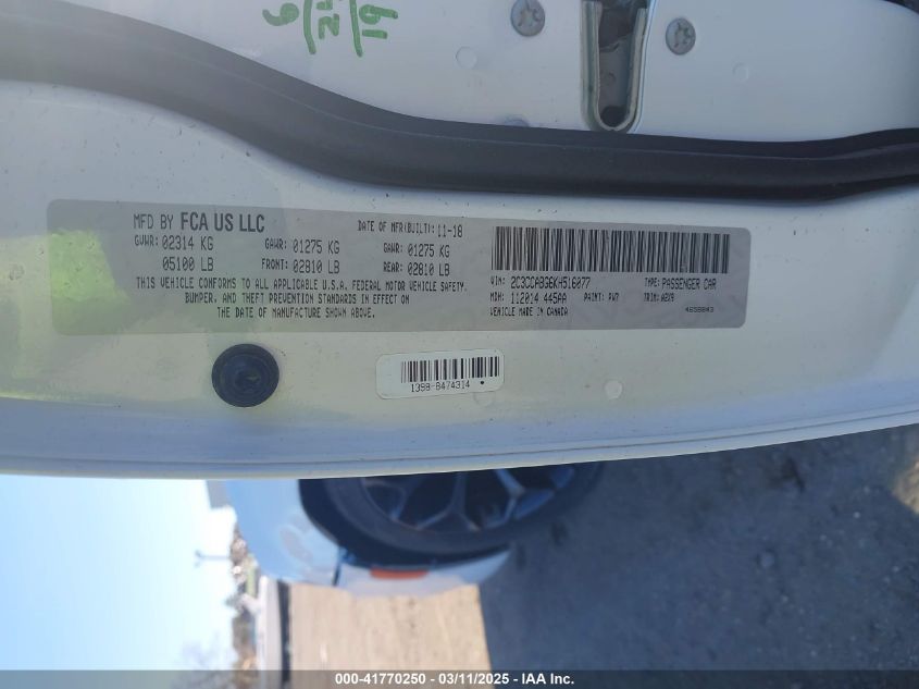 Color WhiteCylinders 6Drive Rear wheel driveVIN 2C3CCABG6KH******State Run & Drive VerifiedDamage It is unknown