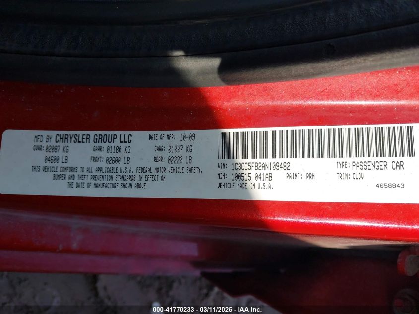 Color RedCylinders 4Drive Front wheel driveVIN 1C3CC5FB2AN******State Run & Drive VerifiedDamage Front rightAuction date 2025-03-25 AutoRIA