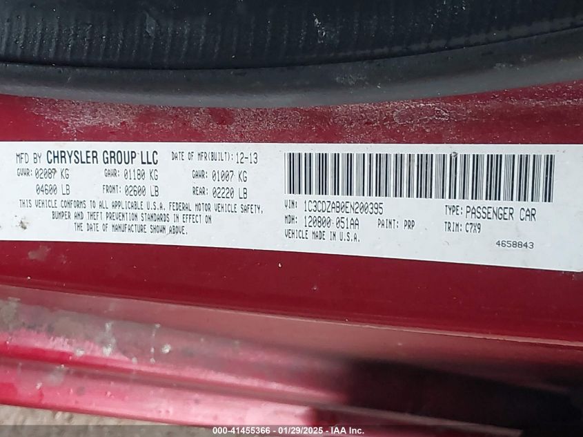 Color RedCylinders 4Drive Front wheel driveVIN 1C3CDZAB0EN******State Run & Drive VerifiedDamage Back AutoRIA