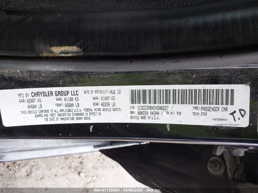 Color BlackCylinders 4Drive Front wheel driveVIN 1C3CDZABXDN******State Run & Drive VerifiedDamage Front or back AutoRIA