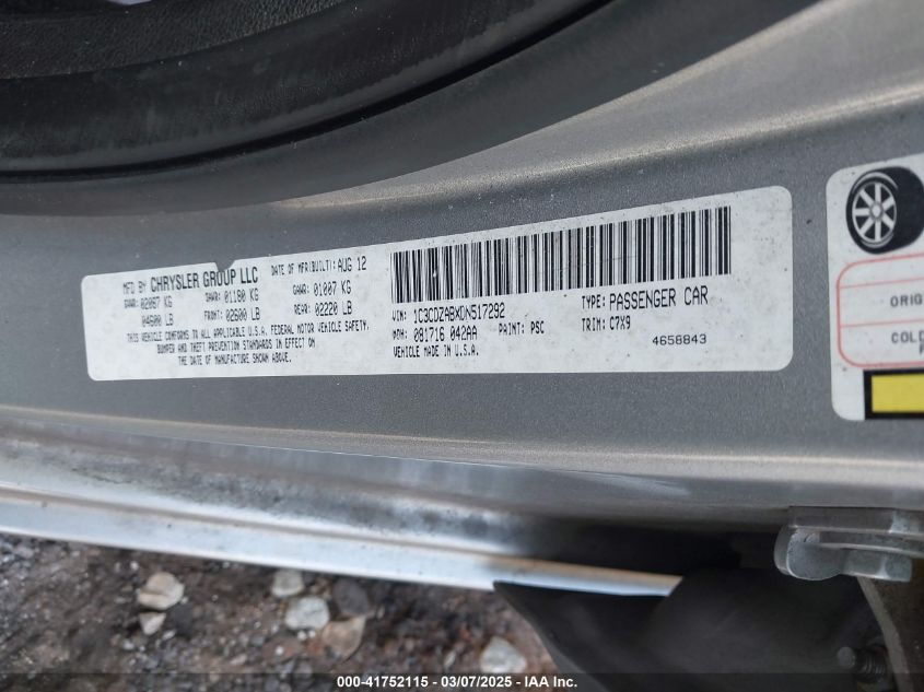 Color SilverCylinders 4Drive Front wheel driveVIN 1C3CDZABXDN******State Run & Drive VerifiedDamage Back AutoRIA